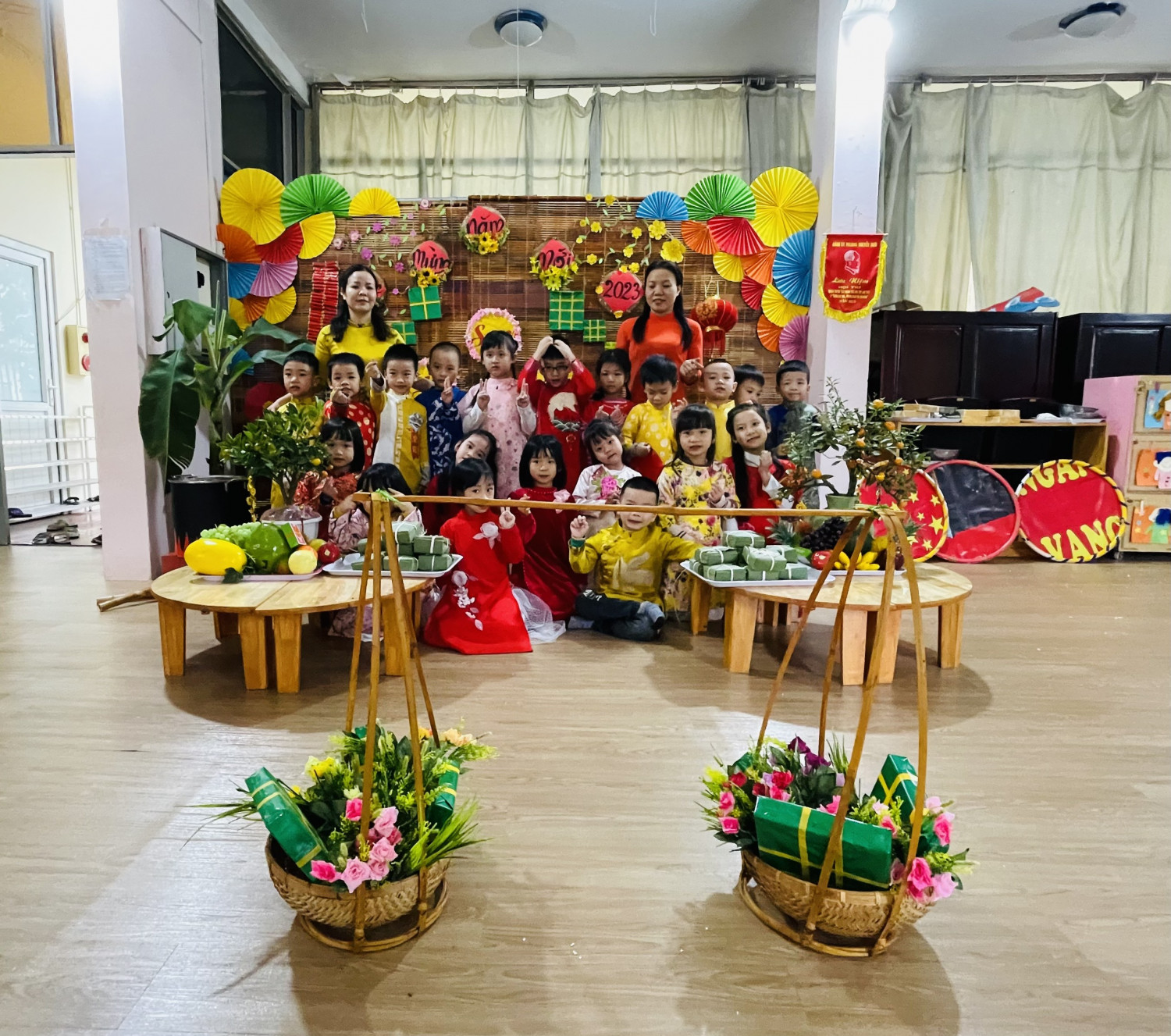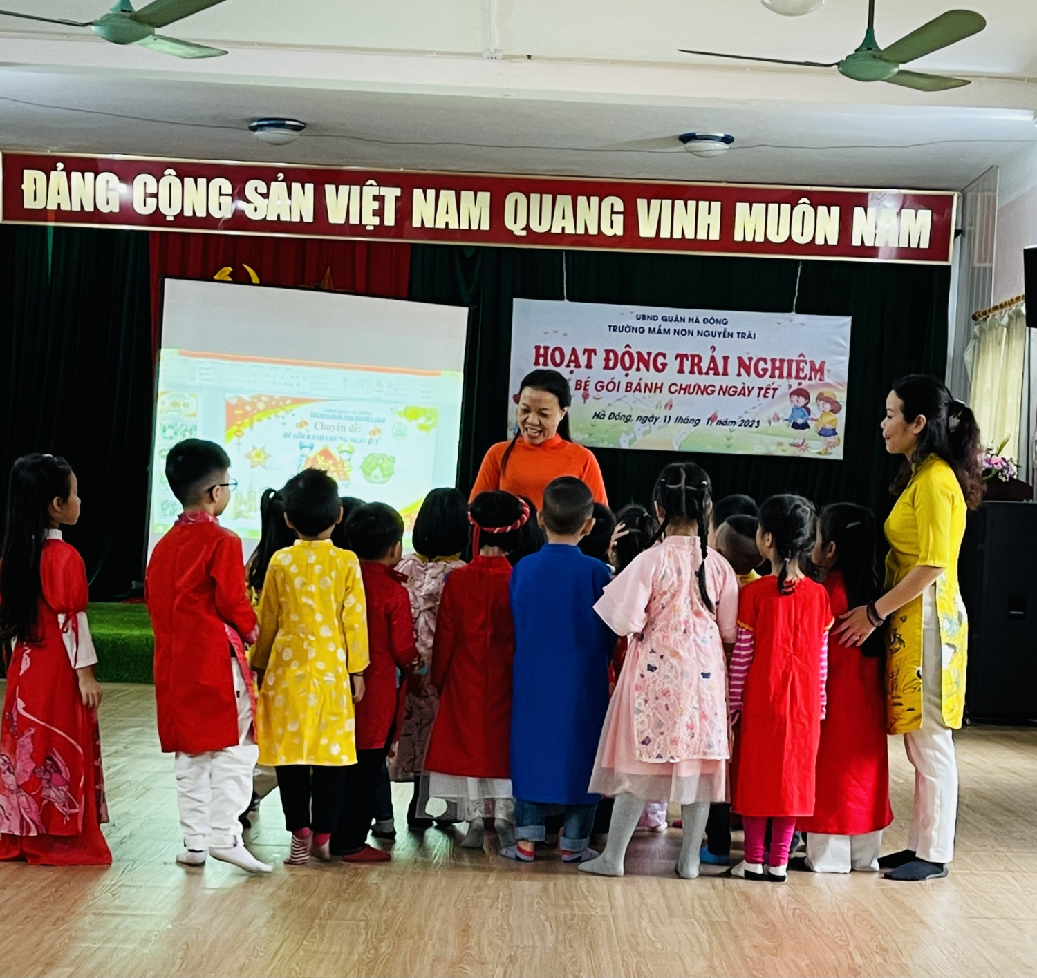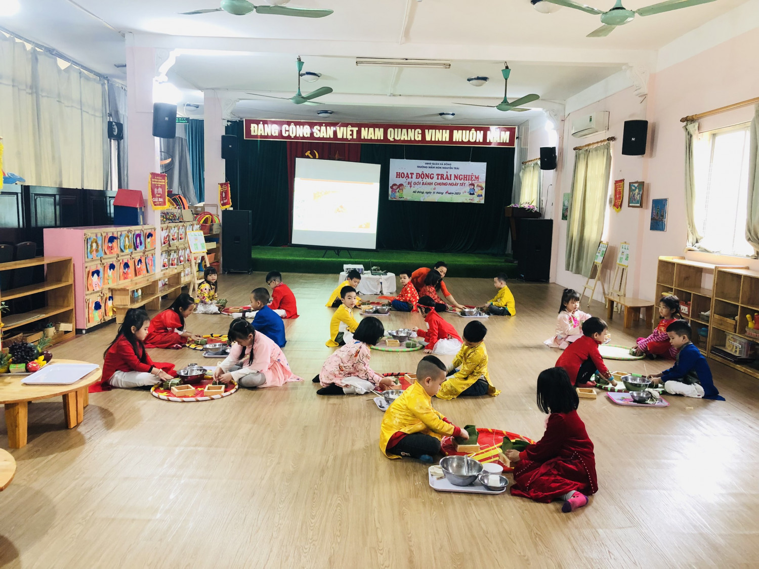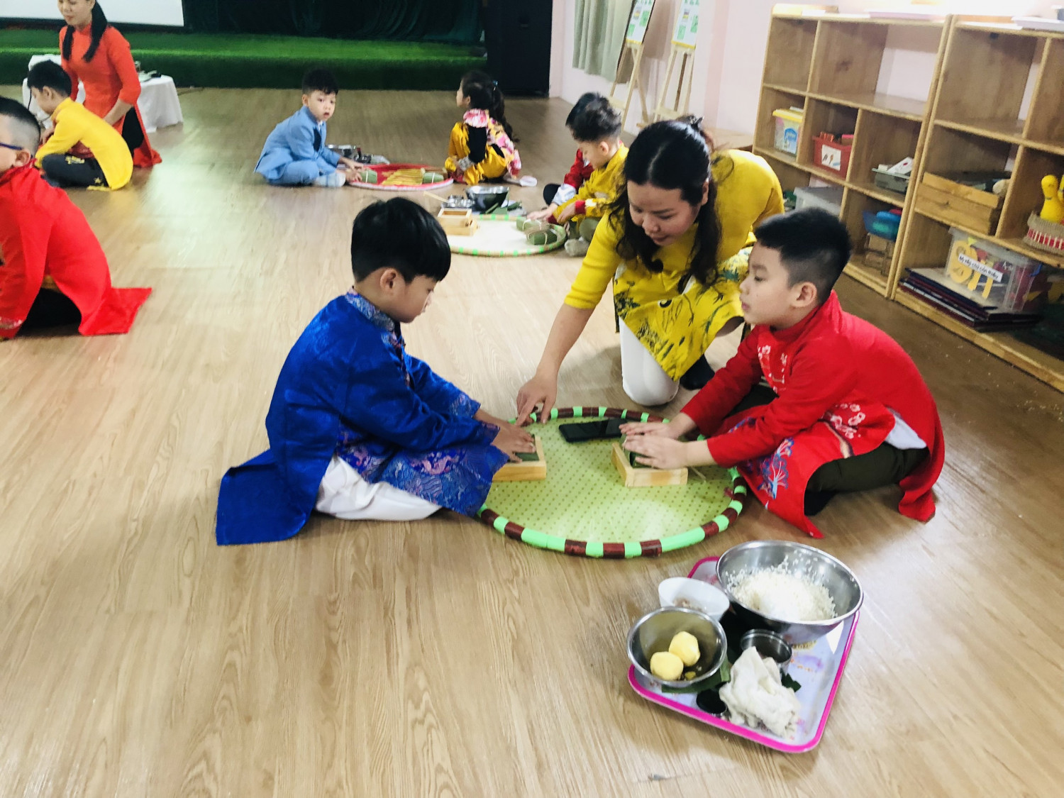 Dưới đâ là các hình ảnh của hoạt động chuyên đề: Trải nghiệm gói bánh trưng của trẻ 5-6 tuổi