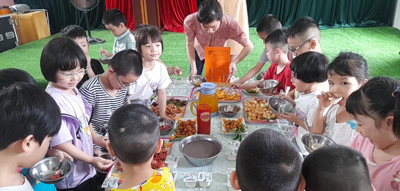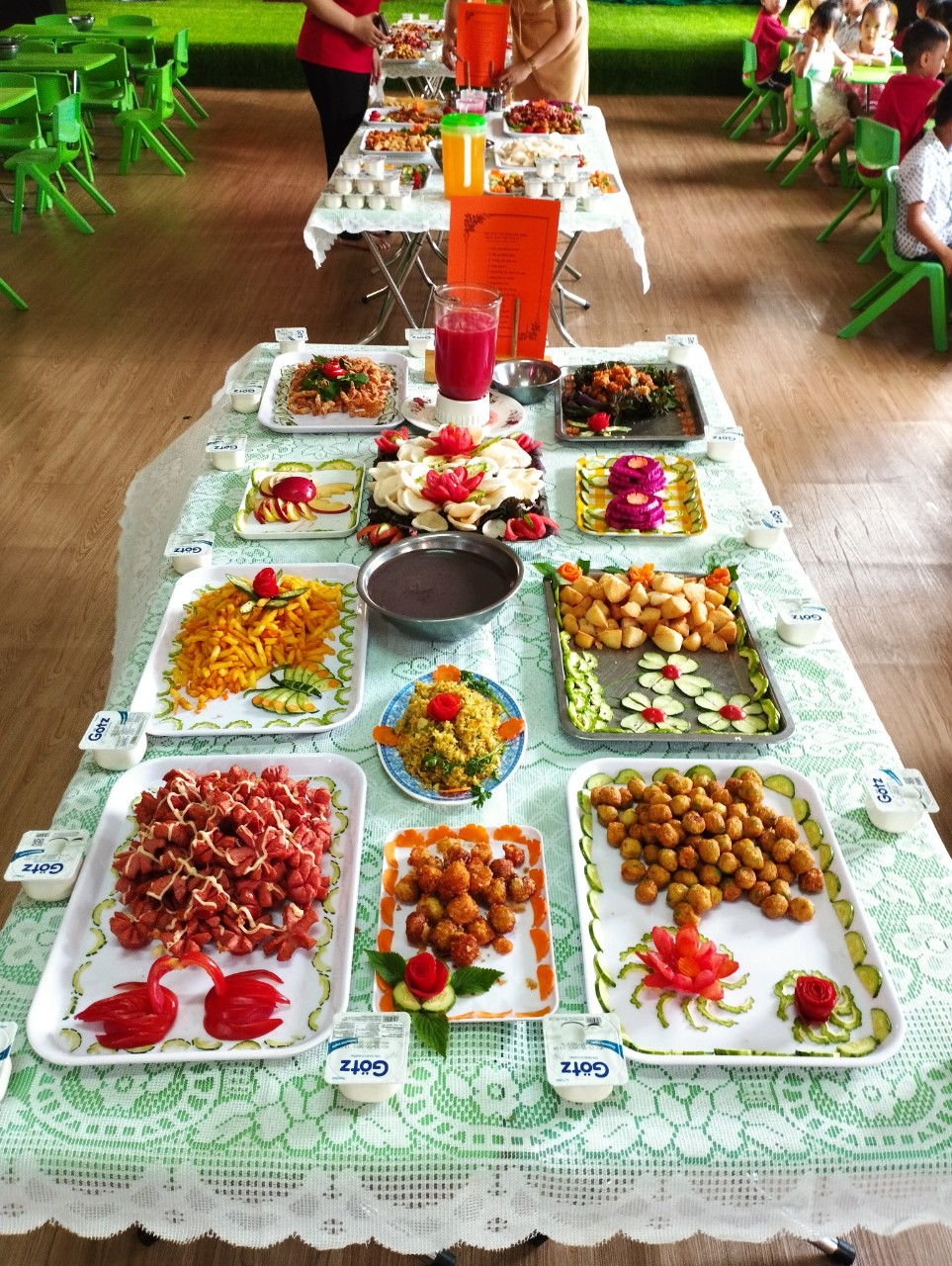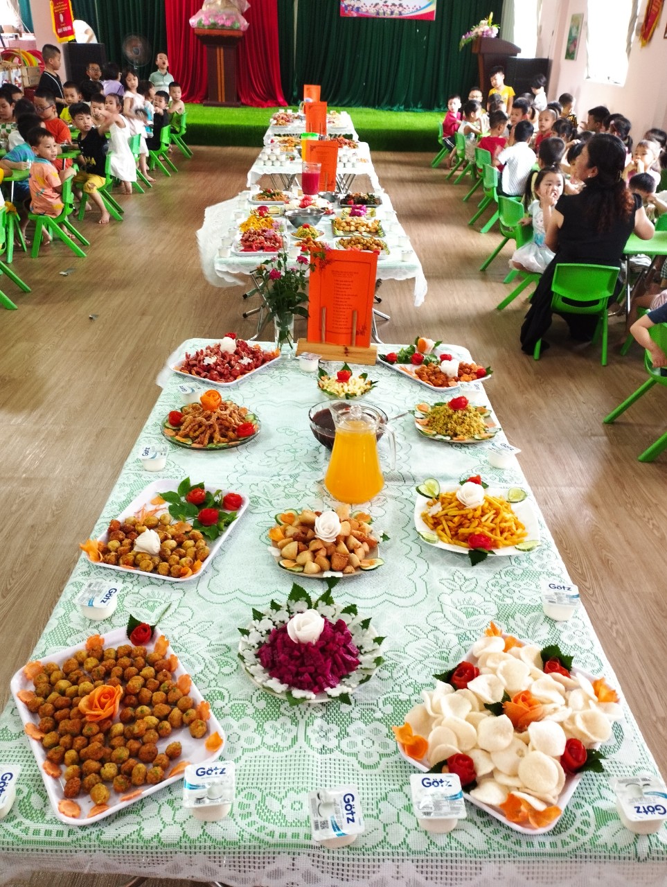 Hoạt động sôi nổi của các bé trong ngày liên hoan tổng kết cuối năm học. Các cô giáo trong Ban giám hiệu, các đồng chí giáo viên, nhân viên nuôi dưỡng đã chuẩn bị một bữa tiệc liên hoan buffe nhiều màu sắc, thơm hương vị, đa dạng các món ăn cung cấp đủ các nhóm chất dinh dưỡng như: Đạm, bột đường, chất xơ, vitamin, chất béo....