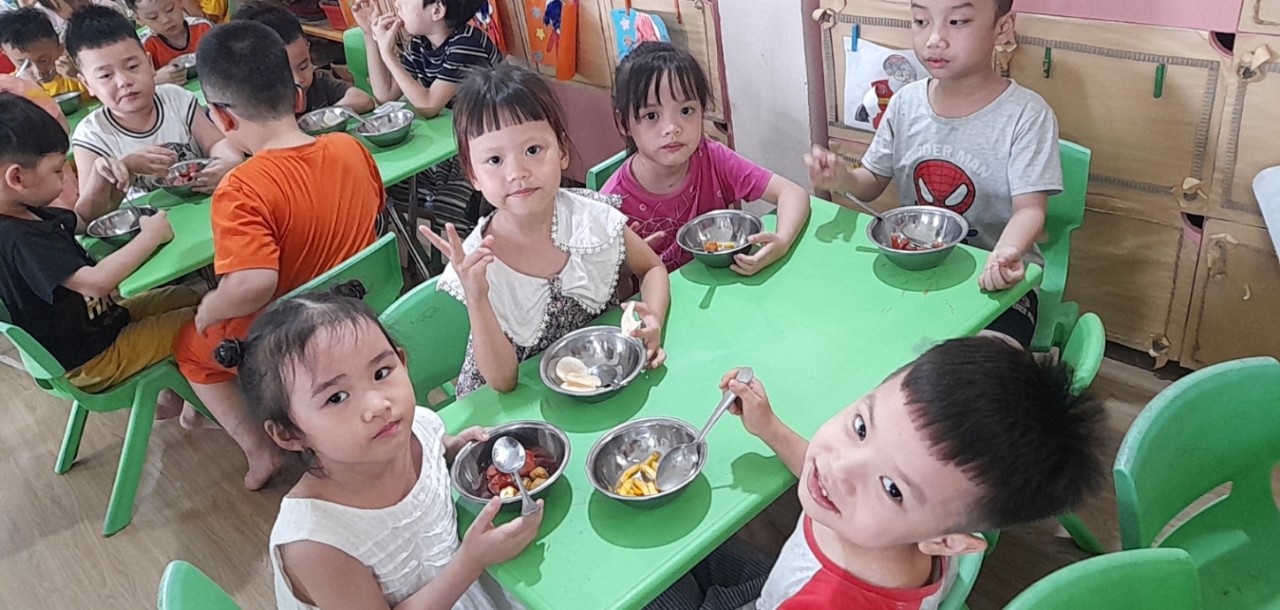 Để có được bữa tiệc ngon miệng, nhiều màu sắc thì các cô trong Ban giám hiệu và đội ngũ giáo viên nhân viên đã nỗ lực hết mình, mỗi người một công việc để mang đến cho trẻ niềm vui thích khi được thưởng thức các món ăn.