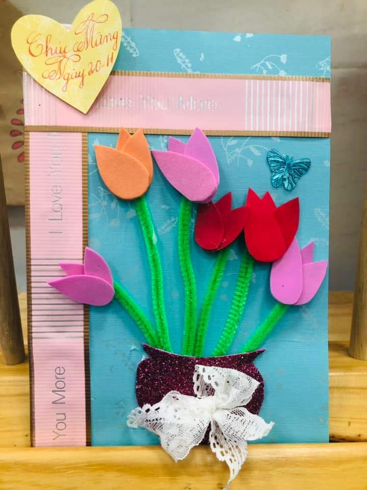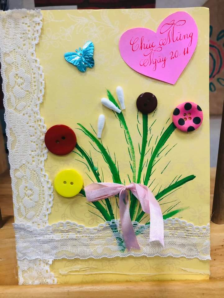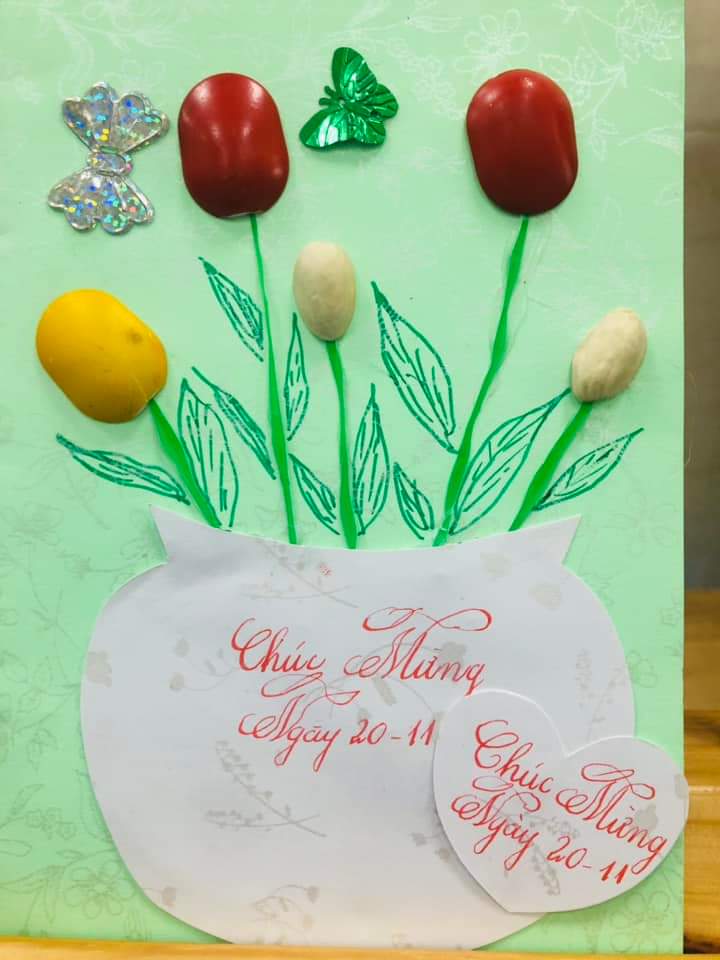 Thật tuyệt vời khi được đón nhận những tấm thiệp chúc mừng đặc sắc do các bé yêu lớp Mẫu giáo bé( 3 -4 tuổi) tự làm để tặng các cô nhân ngày Nhà Giáo Việt Nam 20-11.