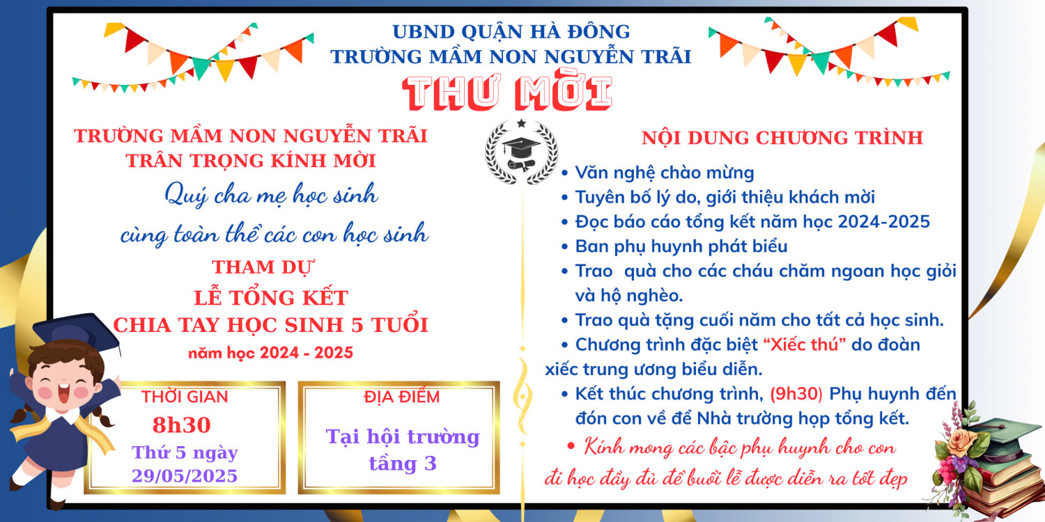 Nhà trường thông báo tới toàn thể các bậc phụ huynh học sinh và các con về chương trình Lê tổng kết năm học 2024-2025