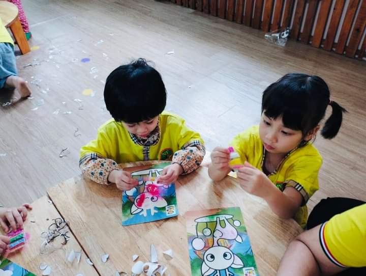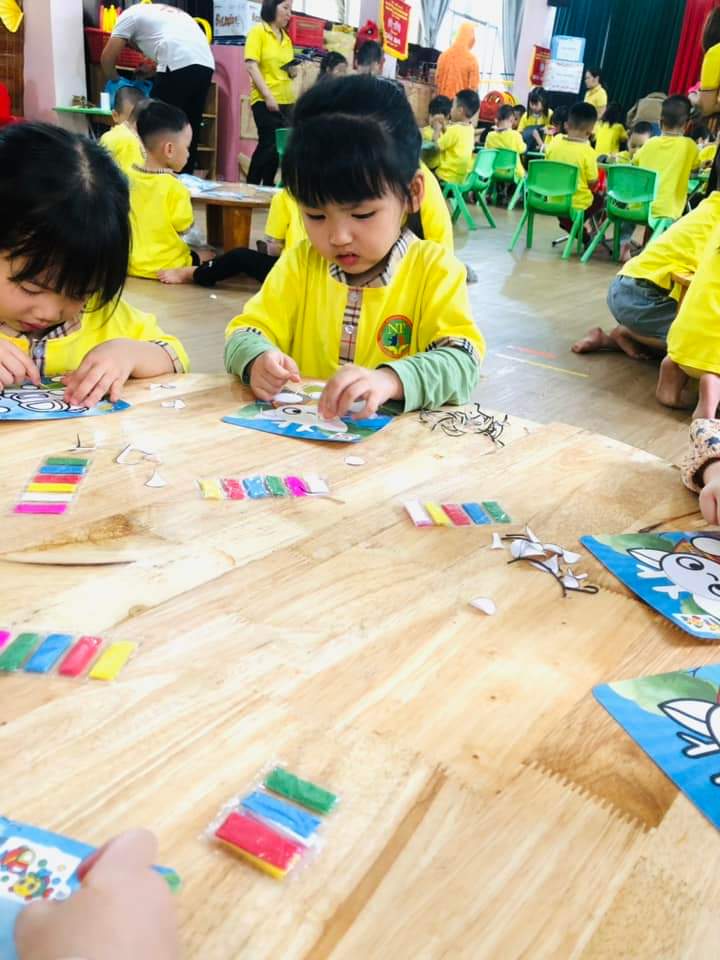 Hoạt động ngoại khóa được các bé luôn mong chờ để được trải nghiệm với mầu sắc, các nguyên liệu gắn đính, các nguyên ,liệu thiên nhiên... Và sản phẩm đa dạng về màu sắc và chất liệu luôn là điểm thu hút hấp dẫn trẻ nhỏ.