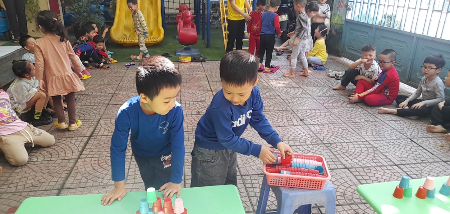 Sau hoạt động ngoài trời các con sẽ tự cất dọn đồ dùng, sắp xếp đồ dùng đúng nơi qui định, rèn cho trẻ thói quen tốt, biết lao động tự phục vụ.