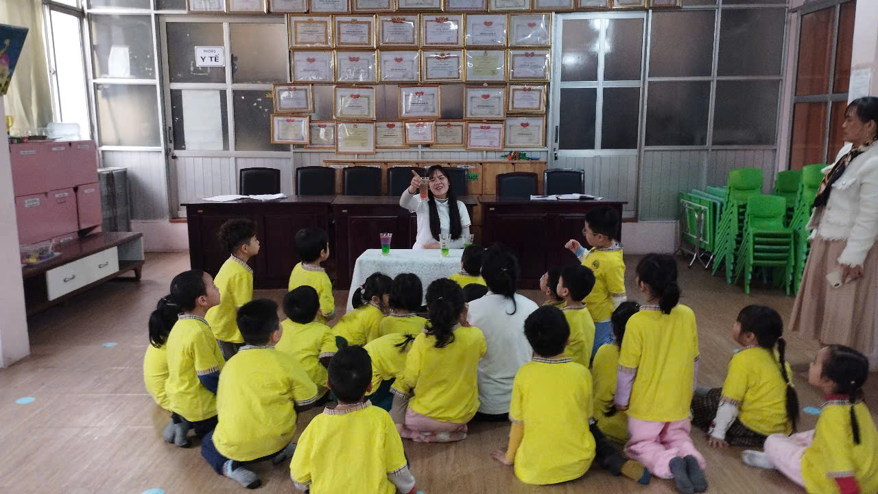 Hoạt động làm quen với Toán và hoạt động ngoài trời với thử nghiệm cốc nước sắc màu của lớp mẫu giáo lớn đã mang cho trẻ đầy đủ kiến thức kĩ năng và niềm vui trong học tập khi được tham gia các thử nghiệm với đường và màu nước.