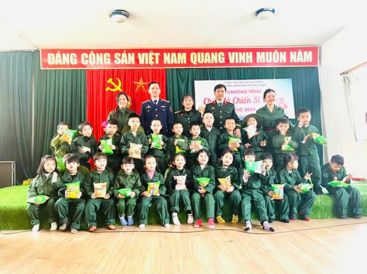Để hướng tới kỉ niệm 80 năm ngày thành lập Quân đội nhân dân Việt Nam( 22/12/1944- 22/12/2024), Ban Giám Hiệu và các cô giáo đã chuẩn bị một chương trình rất ý nghĩa: Chiến sĩ nhí -2024 để chào mừng. Sau bao ngày hăng say tập luyện các bé đa có một trải nghiệm tuyệt vời khi được làm các chiến sĩ nhí.