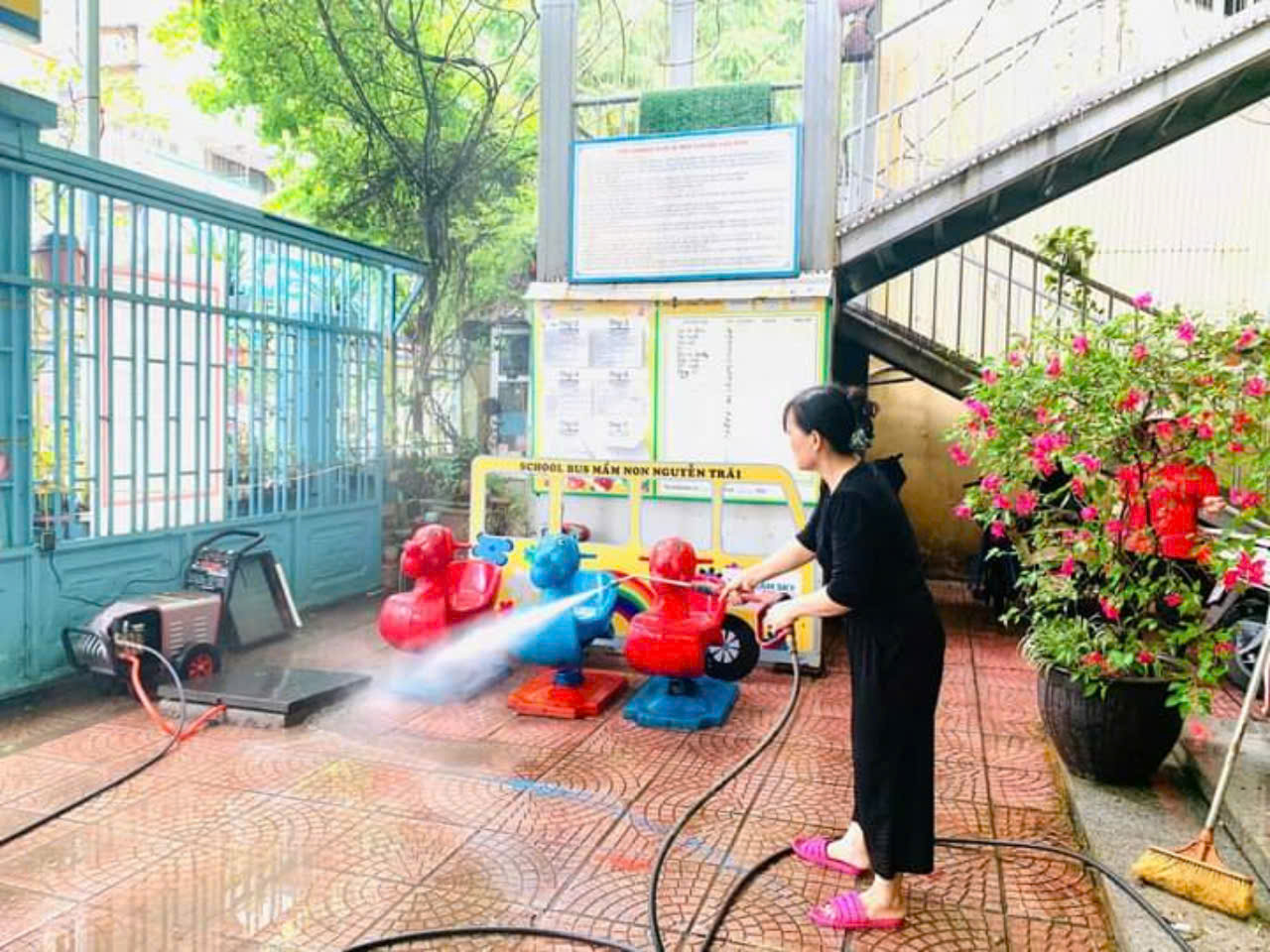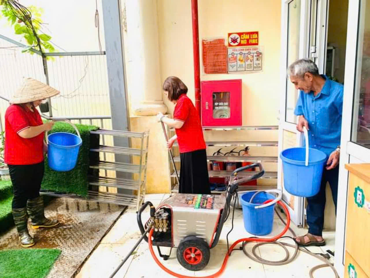 Dưới đây là các hình ảnh tập thể cùng lao động, trang trí, dọn dẹp vệ sinh và tập huấn PCCC để chuẩn bị cho năm học mới