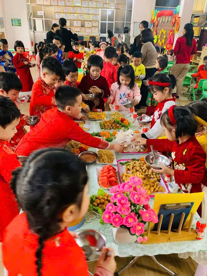 Trong những ngày Xuân mới, các bé tại trường Mầm non Nguyễn Trãi được tham gia các chuỗi hoạt động trải nghiệm không khí tết cổ truyền như: Cùng cô trang trí tại sảnh, tham gia liên hoan tiệc bufe cuối năm, biểu diễn văn nghệ chào Xuân Ất Tỵ.