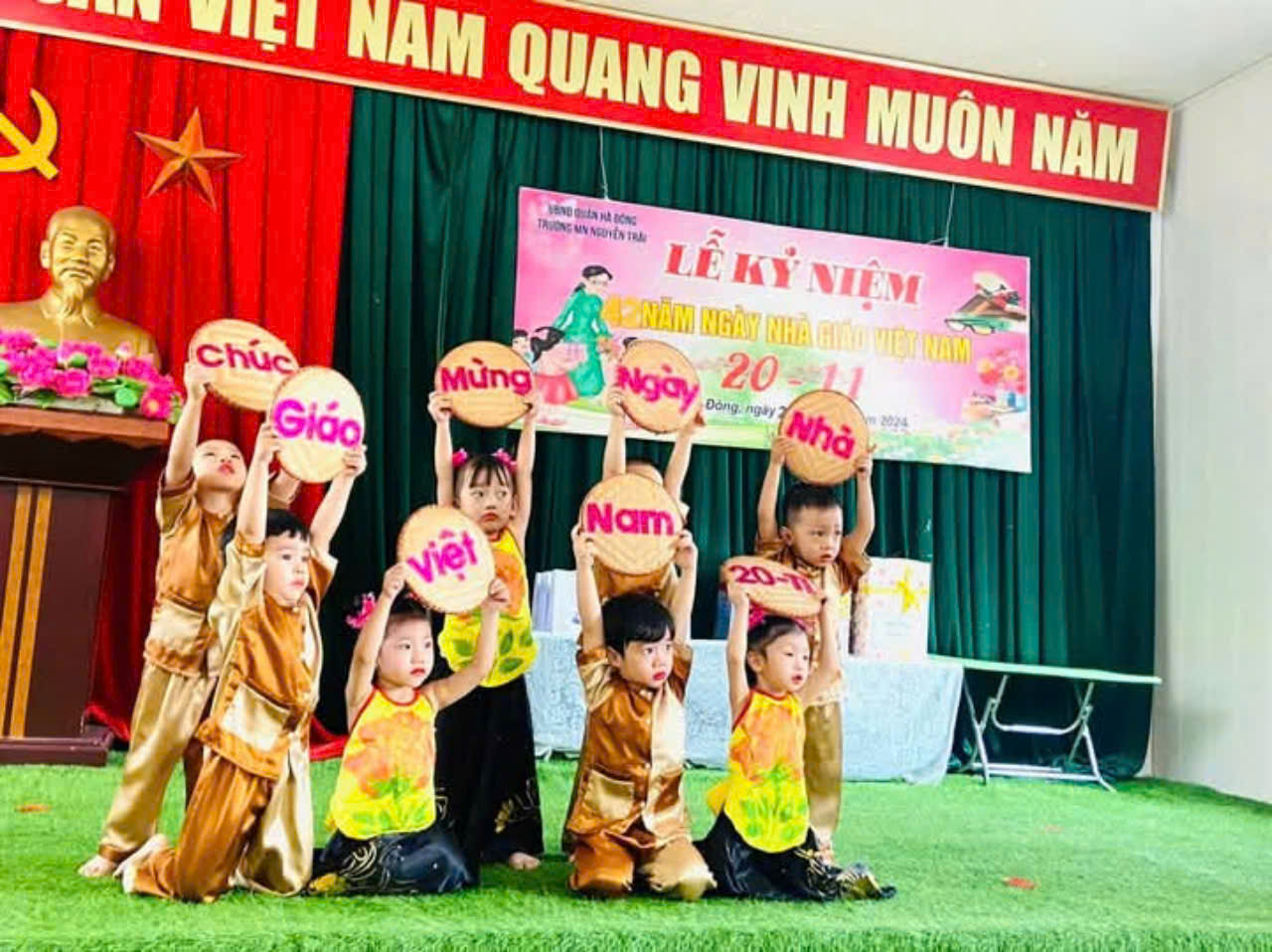 Với truyền thống:"Uống nước nhớ nguồn, tôn sư trọng đạo" trường Mầm non Nguyễn Trãi đã tổ chức mít tinh kỉ niệm 42 năm ngày Nhà Giáo Việt Nam, đây là dịp để các con có những lời ca tiếng hát gửi tặng các cô giáo, là dịp các thế hệ giáo viên trẻ tri ân, cảm ơn các thế hệ giáo viên đi trước đã công tác và giảng dạy tại Nhà trường.