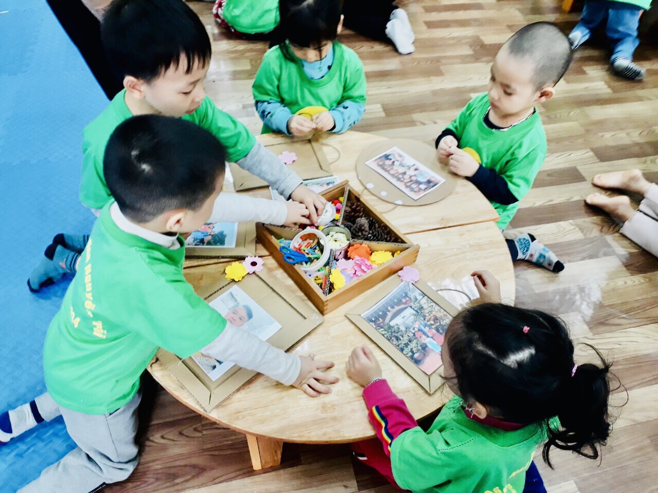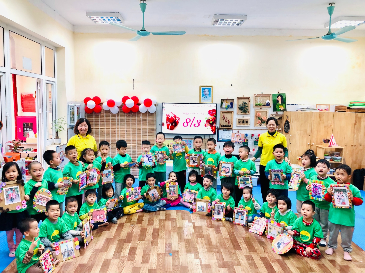 Bé trang trí khung tranh tặng mẹ nhân ngày 8-3